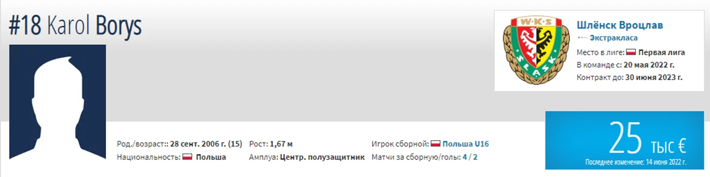 Кароль в возрасте 15 лет 7 месяцев и 23 дня в последнем туре прошлого чемпионата Польши дебютировал за основную команду Шленска проведя на поле 17 минут. За сборную Польши U-16 у него есть уже 7 матчей и 4 забитых мяча. Очень настырный и не боится лезть с мячом на нескольких соперников сразу. В польском клубе однозначно верят в преспективы развития данного футболиста.