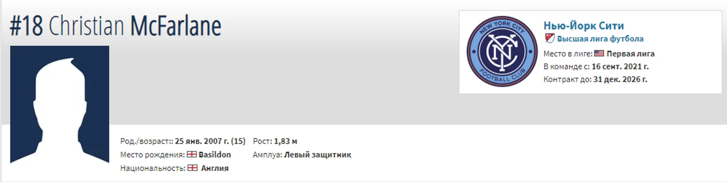 Кристиан уже выступает за вторую команду Нью-Йорк Сити. В свои 14 лет и семь месяцев Макфарлейн является третьим самым молодым игроком, подписавшим контракт с первой командой в истории MLS. Он является достаточно крепким, но в тоже время и скоростным левым защитником.