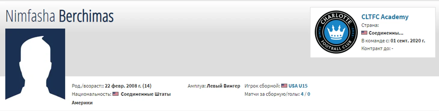 Нимфаша однозначно привлекает внимание скаутов многих европейских клубов. В июле этого года он даже отправлялся в тренировочный лагерь Баварии, но пока он остаётся в академии клуба Шарлотт. Парень не очень высокого роста, но очень быстрый, резкий, с хорошим дриблингом, то что и нужно для игрока его позиции. Выступает пока только за сборную США U-15.
