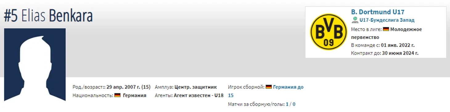 Ещё один ЦЗ из Дортмунда в нашем топе. Сейчас Элиас востанавливается после разрыва крестообразных связок и будем верить, что он сможет быстро вернуться на свой уровень до травмы. Футболист он высокий, крепкий, и с лидерскими качествами. Пока в состав сборной Германии U-16 не привлекался.