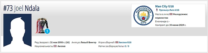 В сезоне 2021/22 Ндала стал самым молодым игроком, перешедшим в команду до 18 лет, что подчеркивает его невероятный талант. Парня активно переманивали в свой состав «ПСЖ» и «Бавария», но он решил продолжить карьеру в «Манчестер Сити». Джоэль электрический вингер, похожий манерой игры на Рахима Стерлинга и выступавший за сборную Англии до 15 и до 16 лет. Ндала, родившийся в 2006 году, уже выступал за молодежную команду «Ман Сити» до 23 лет. Из него явно может вырасти игрок мирового уровня.