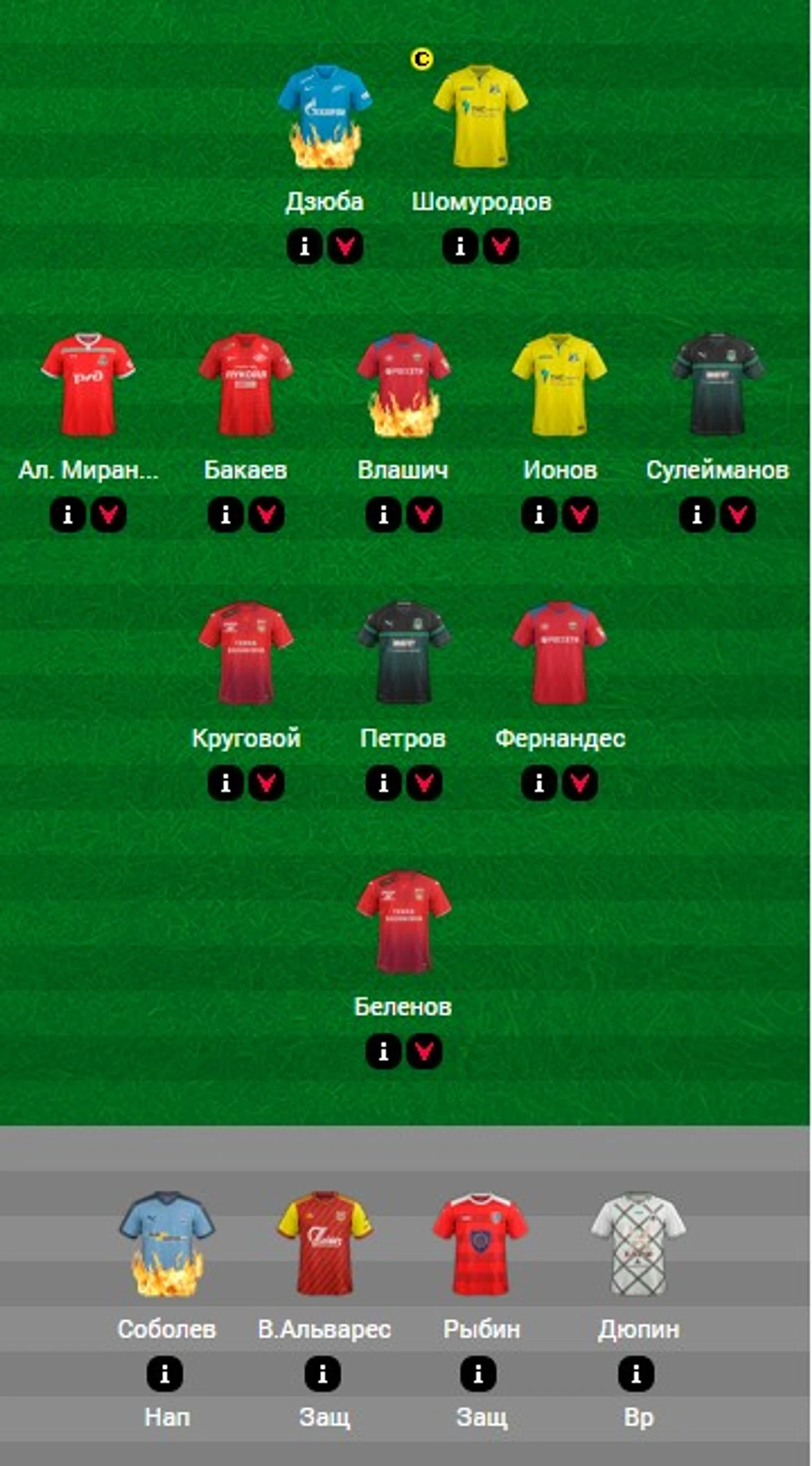 Очевидные варианты, которые стреляют почти в каждом туре: Дзюбу 9.0 можно чередовать с Азмуном 9.5.