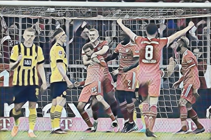 Бавария ближе к середине тайма переставала играть, Тухель убрал Шуппо-Мотинга и Мюллера выпустив Гнабри и Мане. Да и первый отметился сразу ударом по ногам Билленгема. Судья поставил пенальти, Джан сделал счёт 4-1.