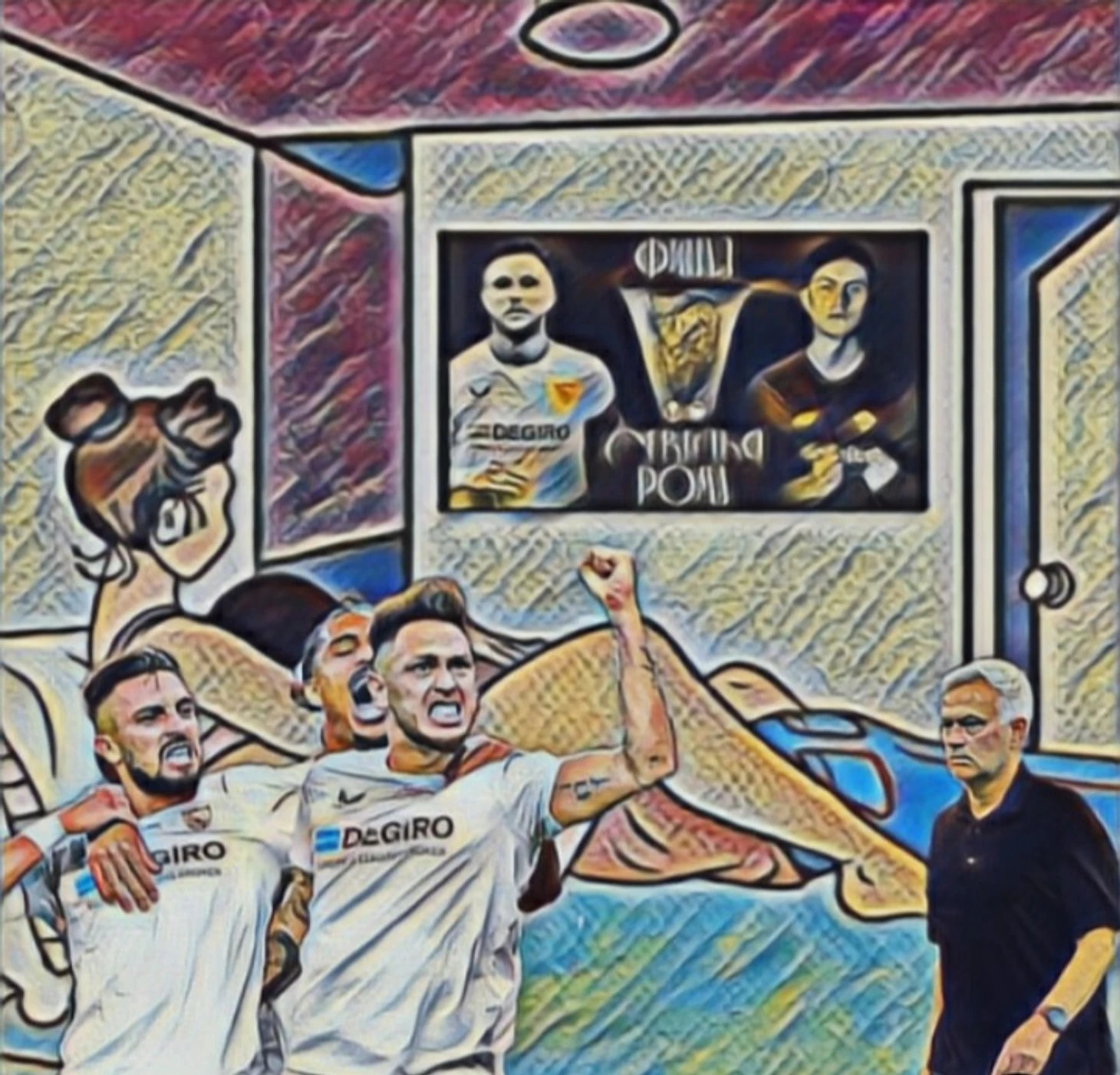 Во втором тайме, Рома поставила автобусный парк. Всё, чем она была занята, это выбиванием мяча при его получении. Севилья продолжала идти в атаку, и вот прострельная передача в штрафную Севильи, и Манчини забегает в свои ворота с мячом. 1-1.