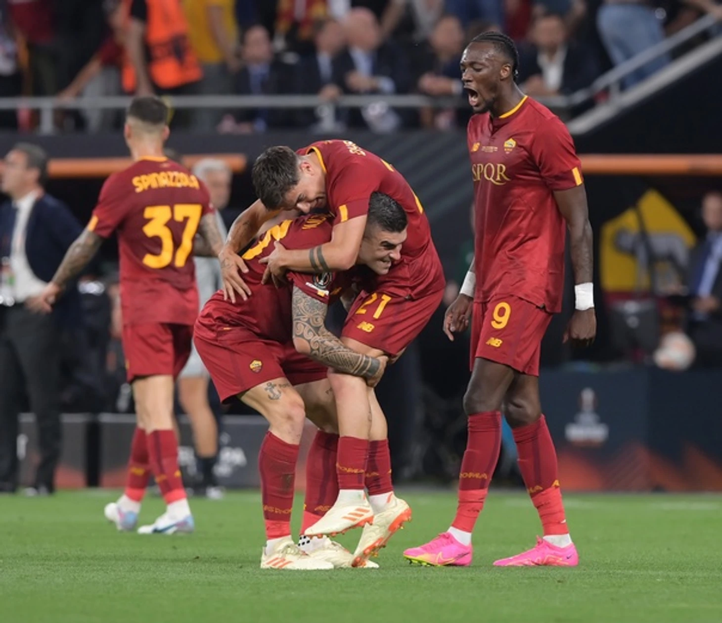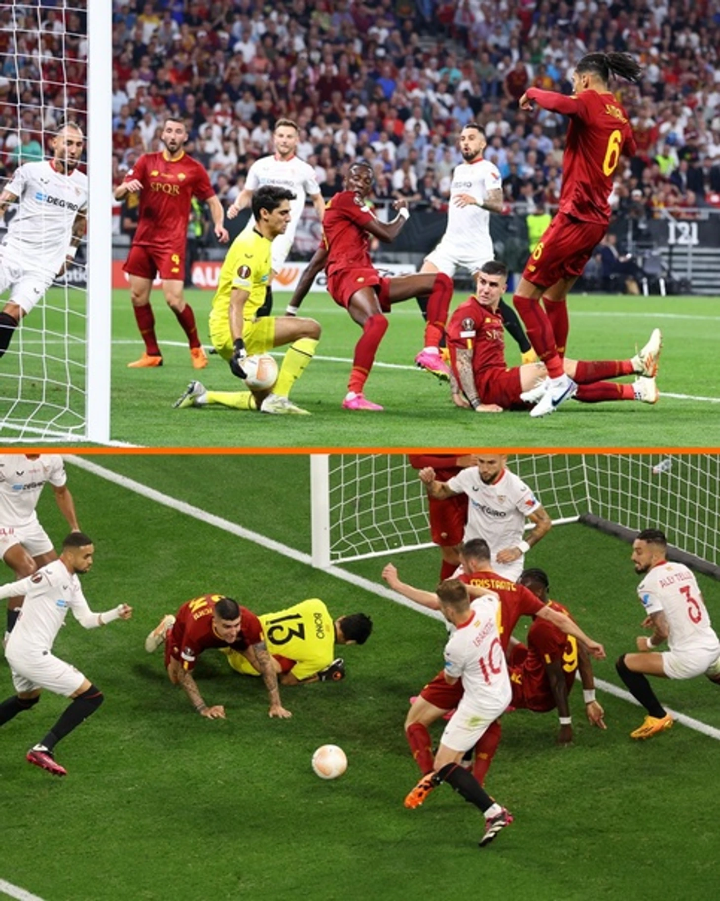 А в серии пенальти, удачливее оказалась Севилья. Вратарь Севили отразил удары от Манчини и Ибаньеса, и принёс победу своей команде. Победный пенальти, от Монтиэля, был перебит. Сначала гола не было, а вратарь Ромы, нарушил правила. Со второй попытки, Монтиэль, забил.