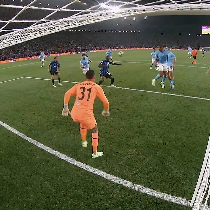 Интер в конце тайма создал великий момент. Скидка на Лукаку в центр вратарской, и Лукаку пробивает по центру головой с близкого расстояния. Эдерсон ногой, чудом отбивает мяч. В следующей атаке, Лукаку мажет удар. А уже в дополнительное время, Эдерсон своим сейвом дарит Манчестеру Сити кубок Лиги Чемпионов!!!