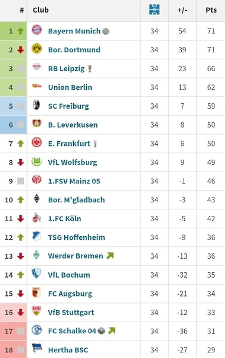 В Бундеслиге закончился сезон и Боруссия в последнем матче не смогла вырвать чемпионство, а Унион впервые за всю историю, сыграет в Лиге Чемпионов. Да и снизу пусть и без драмы, но всё нервно было.