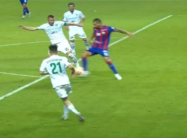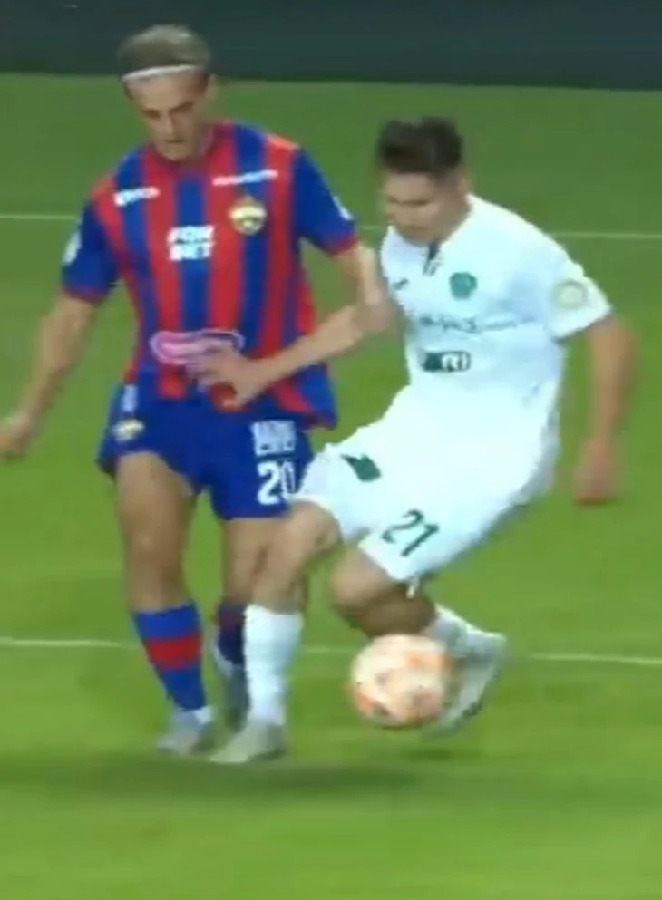 Второе пенальти, если рассматривать эпизод в штрафной ЦСКА, то 100% точка. Но до этого, у Ахмата был фол в атаке. Кучаев на эмоциях побежал в отбор, и отомстил...