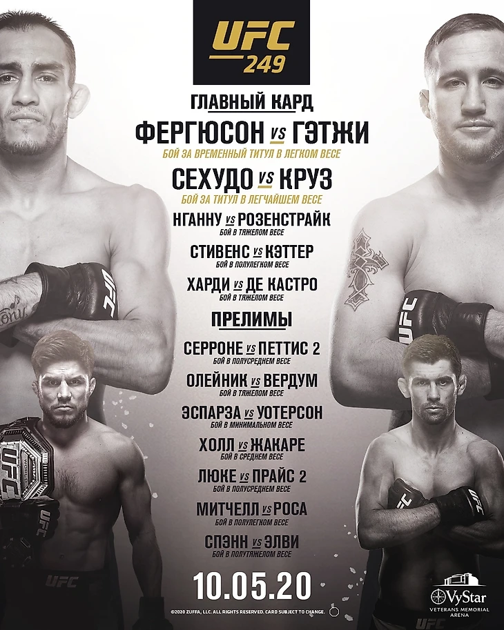 10 мая состоится UFC 249, где в главном карде нас ждут 12 интересных поединков, и вот самые интересные из них: