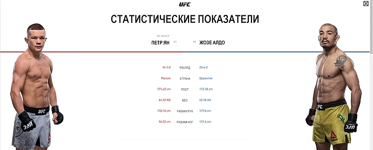 Петр – российский боец UFC и главный претендент на титул легчайшего веса. Ян еще ни разу не проигрывал в американском промоушене и идет на серии из шести побед подряд. Сейчас на счету Петра 14 побед и всего одно поражение.