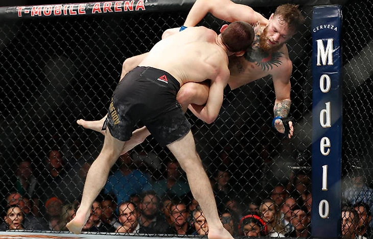 В партере Хабиб как рыба в воде: контроль, гранд-энд-паунд, болевые. Очевидно, что если бой перейдет вниз, то даже олимпийскому чемпиону по борьбе будет трудно встать, а пока Гейджи будет вставать, Хабиб будет забирать очки.