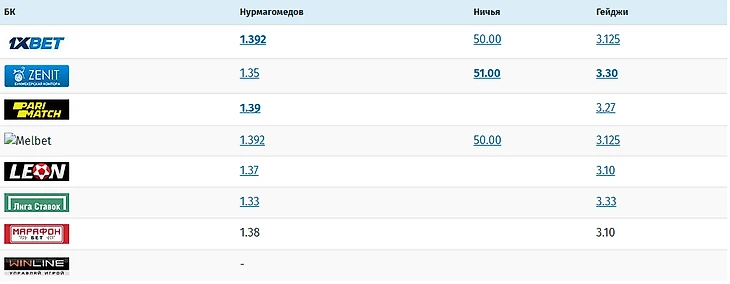 Фаворит букмекеров – Нурмагомедов.