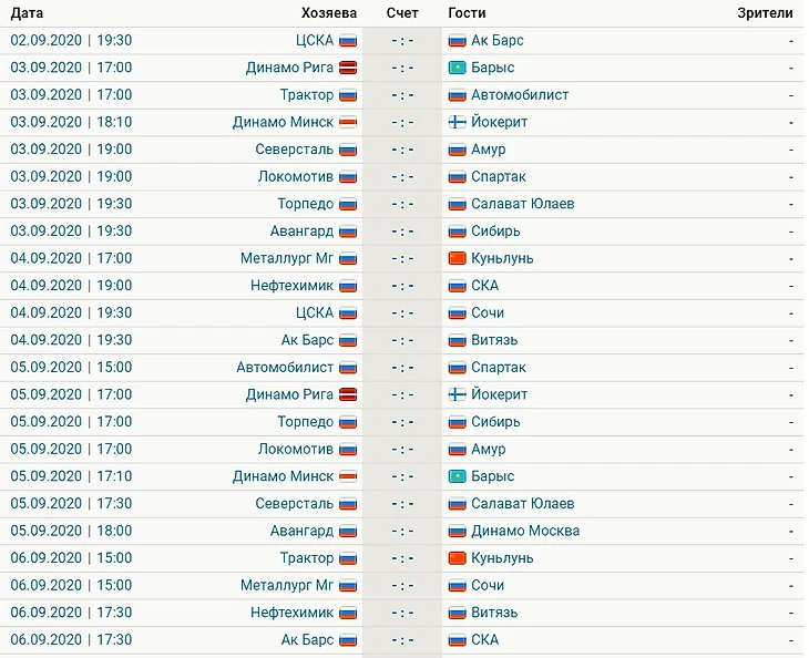 Расписание матчей КХЛ сезона 2020/2021 – полный календарь матчей