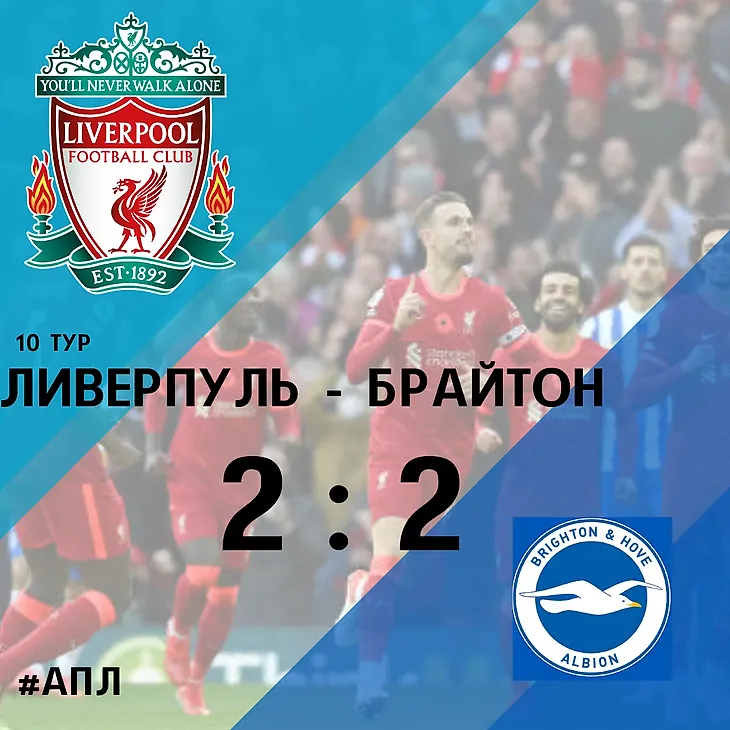 Автор VikNik «Ливерпуль» разделил очки с «Брайтоном», ведя 2:0