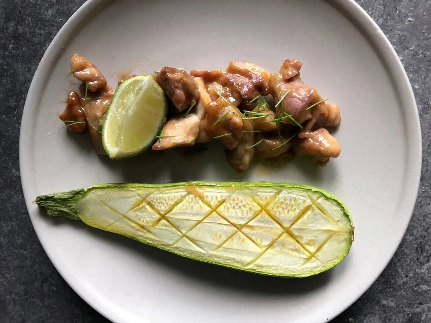 Запеченный кабачок с курицей в кокосовом молоке с медом