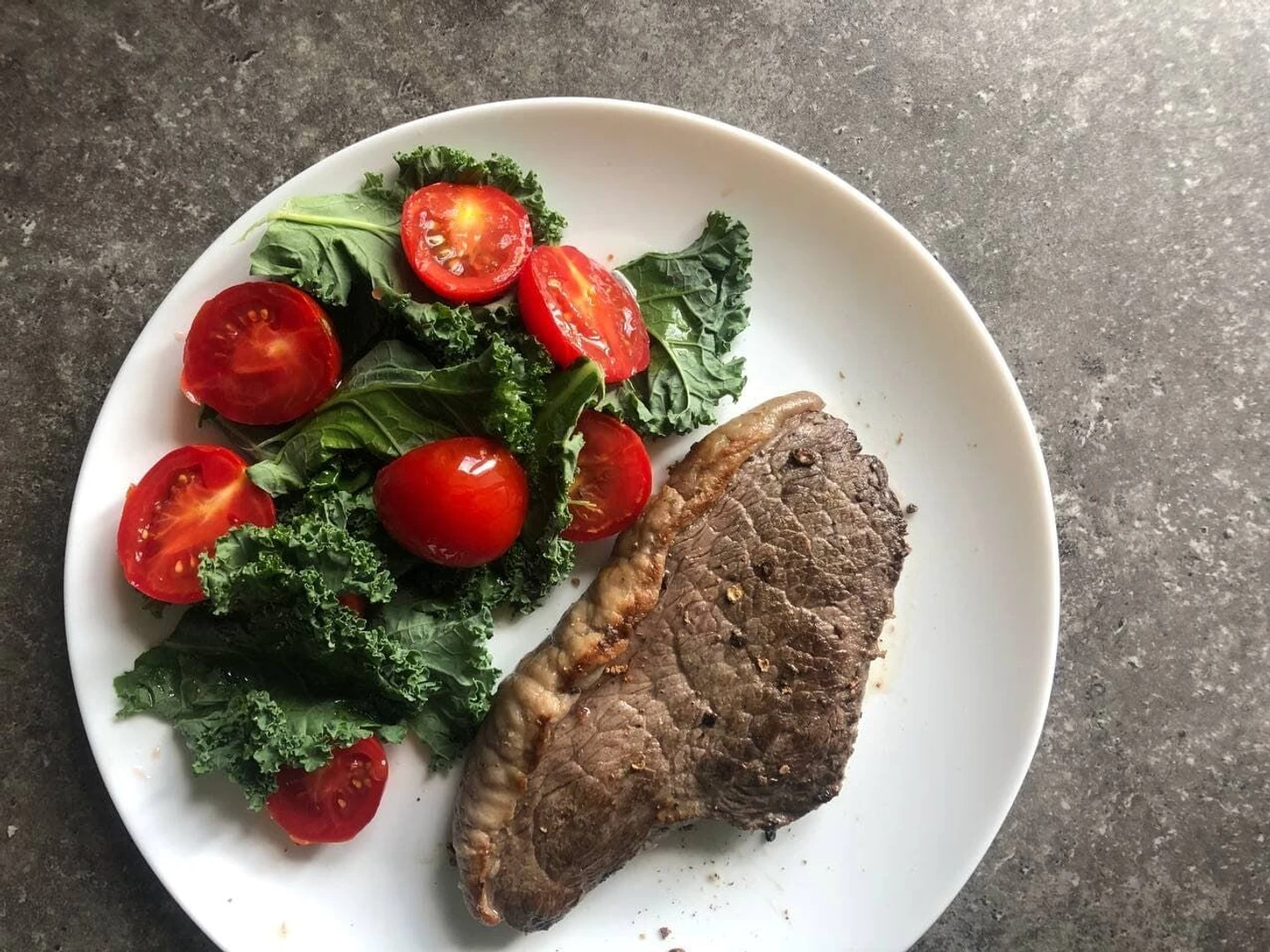 Жаренный стейк и нарезка из свежих овощей
