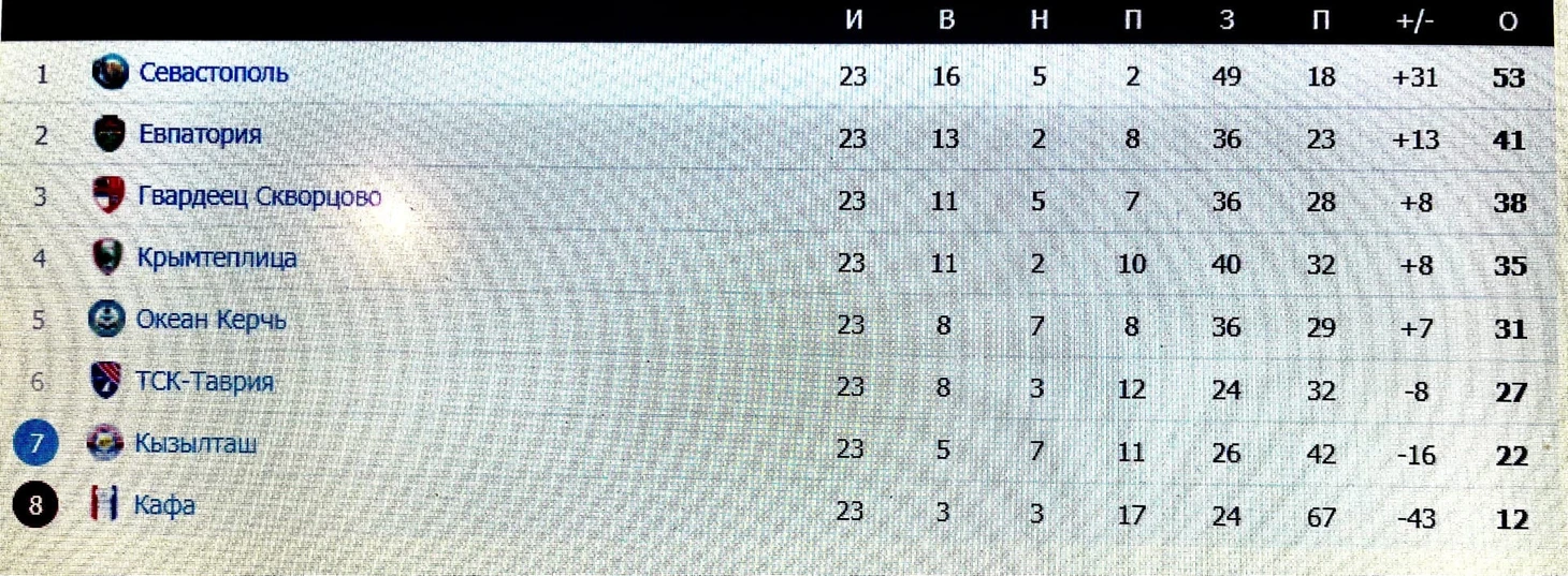 Не собираюсь особо разбирать турнирную таблицу, однако хотел отметить следующий факт. Существует ФК "Севастополь" - регулярный чемпион Крымского турнира и даже Кубка Крыма (есть и такое), но почему мы не видим клуб ни в ПФЛ, ни в ФНЛ, даже в Кубке России? Вопрос очень сложный, не хочу сейчас углубляться в него, видимо, есть на то причины.
