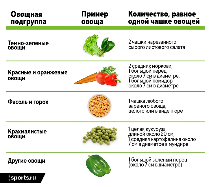Количество овощей, которое нужно есть, чтобы быть здоровым, зависит от возраста, пола и уровня физической активности. Здоровому человеку в возрасте 19-50 лет, который занимается спортом меньше получаса в день, достаточно 1-3 чашек (объемом 200-250 мл) сырых или вареных овощей в день. Спортсменам и людям, которые занимаются тяжелым физическим трудом, овощей нужно больше. Сколько именно – лучше спросить у тренера или диетолога, потому что потребности зависят от вида спорта и типа тренировок.