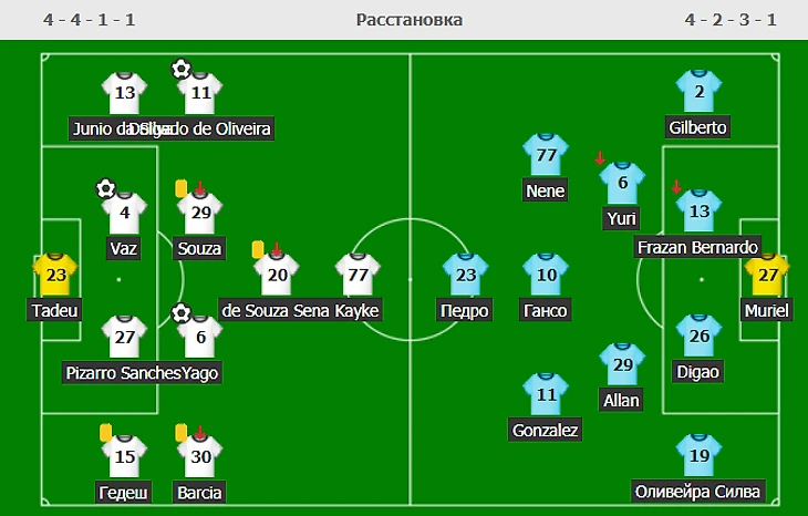 Пизарро Санчес – 6,0. Был активен в атаке и в обороне.