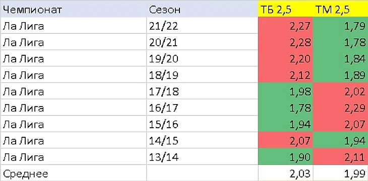 В Испании ТБ случается через каждые 2,27 матча, ТМ через 1,79 матча. Ну видно что Ла Лига низовой чемпионат, и самое интересное что сильный перекос начал происходить с сезона 18-19. Что произошло пока сложно понять, но факт на лицо. Ранее играли больше на ТБ!