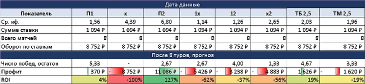 Большая прибыль идет на П2, но я это связываю с очень высокими кэфами, посмотрите - средний кэф на П2 - 6,8 сейчас.