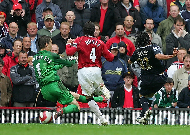 Карлос Тевес и Бобби Замора остались вдвоем у штрафной «Манчестер Юнайтед». Не заметив шесть защитников вокруг, форварды сыграли в стеночку, а аргентинец реализовал момент.