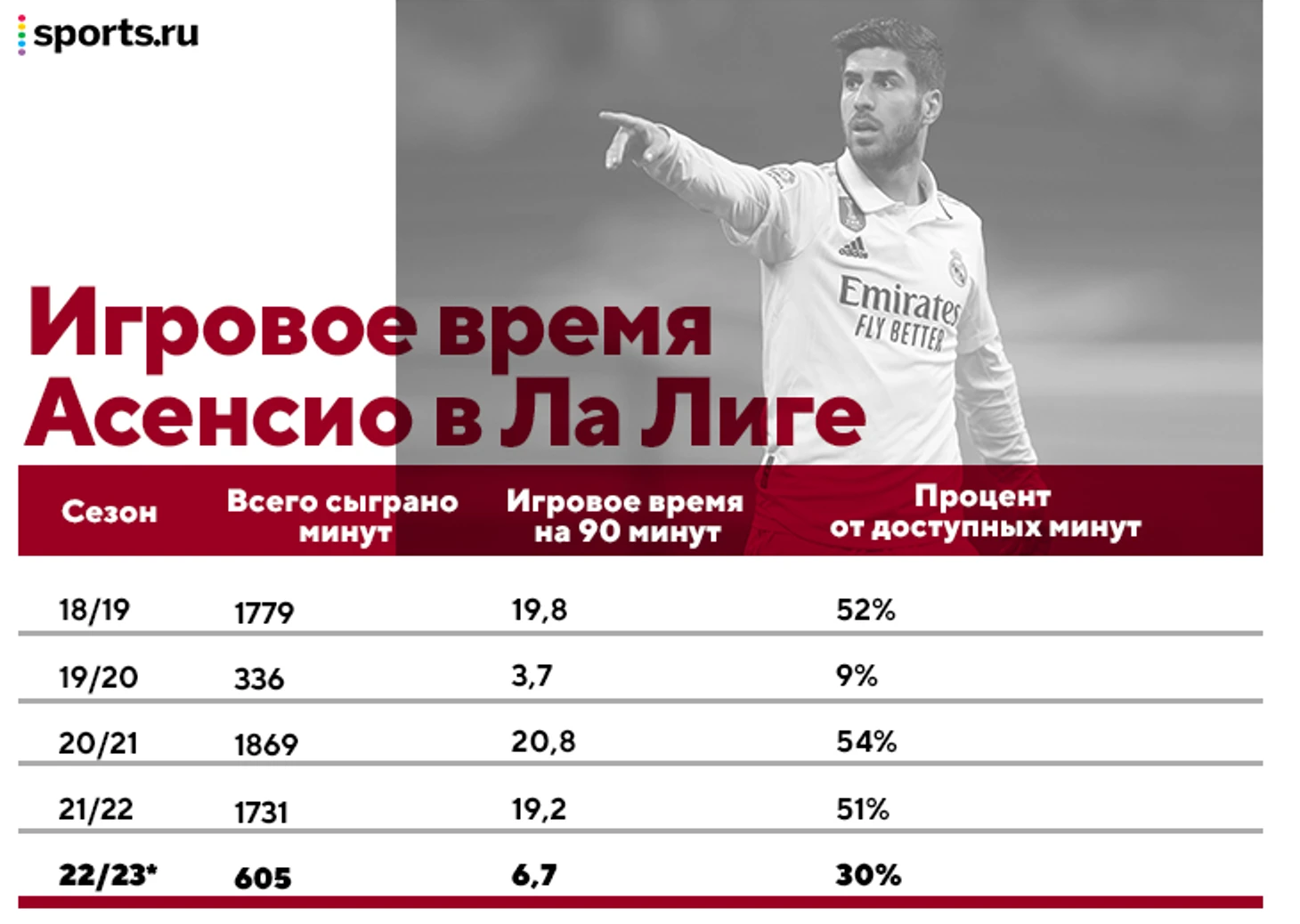 Последние несколько лет слухи об уходе Асенсио – обязательный сюжет трансферного окна. Даже потенциальную замену Бензема и продажу надоевшего Азара обсуждают реже, чем контракт Марко. На этот раз развязка близка: летом он либо получит повышение зарплаты, либо сменит клуб.
