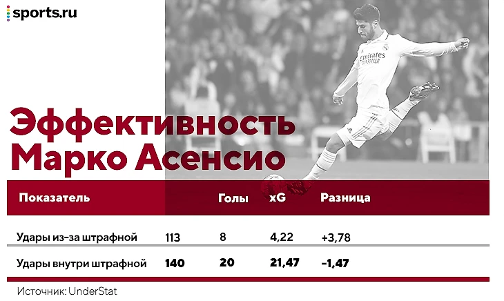 Крутые удары на контрасте подсвечивают, как усредняется Марко внутри штрафной. Да, он может приносить голы, которые не вытекают из хода матча. При этом иначе Асенсио почти не обостряет.