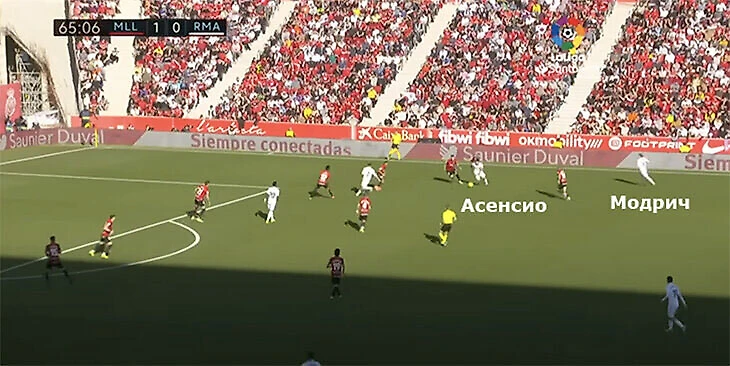 Максимально комфортный сценарий для Асенсио. Однако он пока совсем не убеждает: вот в этом моменте соперники прочитали испанца и успели накрыть.