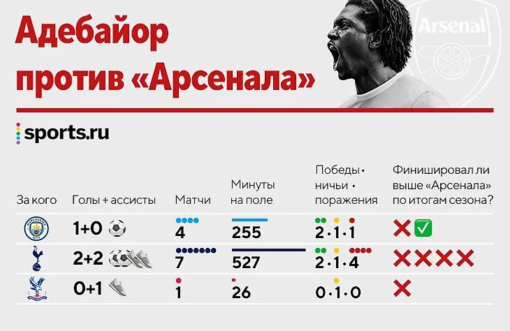 Возможно, история с «Арсеналом» не получилась бы такой громкой, если бы не столь ранняя встреча после болезненного разрыва. Суперклубы сошлись уже в пятом туре – злость Адебайора еще не остыла, и вся Англия предвкушала принципиальное противостояние.