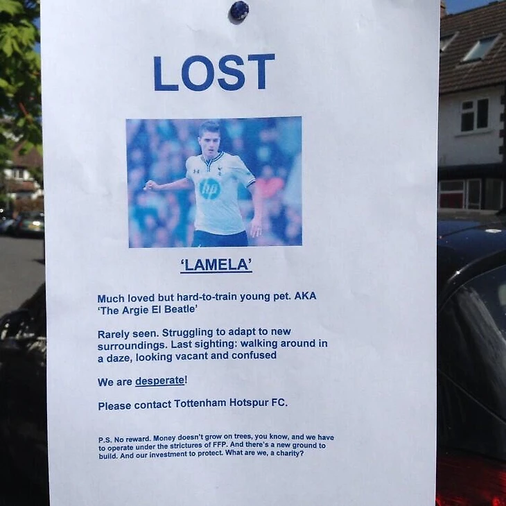 За декабрь Ламела еще дважды вышел в старте, два раза выскочил на 15 минут и пропал. Фанаты буквально потеряли самую дорогую покупку в истории: в сети разлетались мемы про Ламелу, по Лондону расклеивались объявления о поиске «питомца по кличке Коко, который замечен в неудачных попытках адаптироваться к новому окружению и пока привык только к лондонским клиникам».
