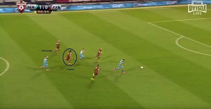 Санчес отвернулся от Дзюбы, убегающего с мячом, и начал высказывать претензии бельгийскому полузащитнику, потерявшему этот самый мяч. Чуть позже Санчес и вовсе остановился, оставшись сторонним наблюдателем второго зенитовского гола.