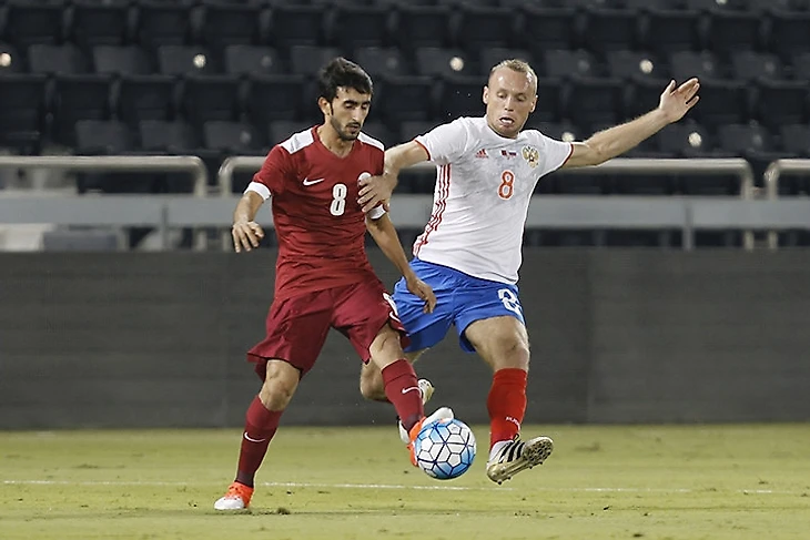 Зачем было действовать с двумя игроками, закрывающими всю бровку почти без смещений в центр, если в штрафной был Полоз, а не Дзюба? Самедов перестал навешивать в катарскую вратарскую минуте на 10-й, Комбаров совершил еще пару попыток ближе к окончанию получаса игры, но все мячи уходили в молоко.