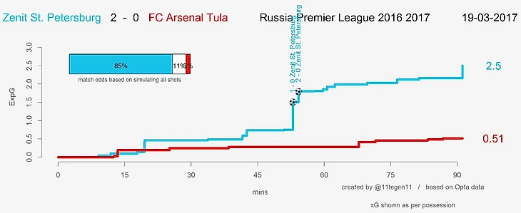 В матче с «Арсеналом» статистика выглядит лучше, но она во многом обманчива. Большая часть моментов у «Зенита» начала возникать уже после того, как счет стал 2:0, а туляки перешли на полноценную игру в три защитника.