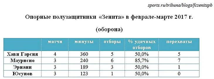Оборонительных действий недобирает не только Гарсия – показатели Эрнани и Юсупова (с поправкой на их игровое время) тоже далеки от идеала. На фоне остальных центральных хавбеков питерцев выделяется Маурисио, который заметно прибавил в сравнении с первой частью сезона.
