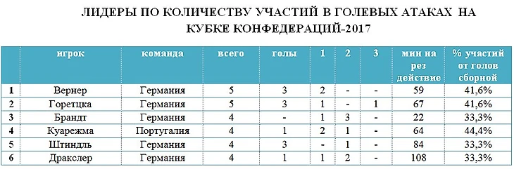 Одна из главных причин удачного применения Левом формации с тремя защитниками – отличная игра фулбэков. Хектор, Киммих, Хенрихс и Платтенхардт (сыграл один матч – против Камеруна) не только успевали отрабатывать в обороне, но и постоянно участвовали в атаках своей команды. Лучшая иллюстрация действий немецких латералей впереди – список ассистентов Кубка.