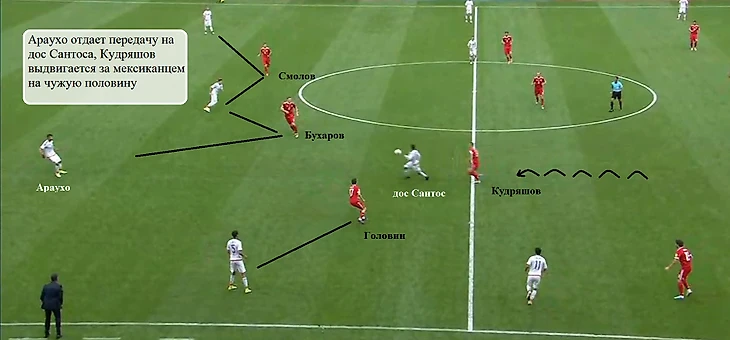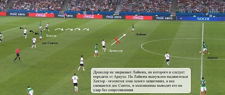 Сама Россия в первых двух матчах нечасто прибегала к прессингу (хоть и первый мяч в ворота Новой Зеландии начался после перехвата на стыке средней и финальной третей поля), но против Мексики провела достаточно качественный матч. Интересно, что едва ли не ключевой фигурой для активной обороны на чужой половине поля стал центральный защитник Кудряшов.