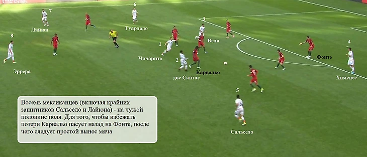 Активнее других прессинг применяли все те же мексиканцы, а также сборная Чили. Мексика свой лучший матч на турнире провела уже в первом туре, и португальцы с большим трудом (особенно в первом тайме) переходили на чужую половину поля.