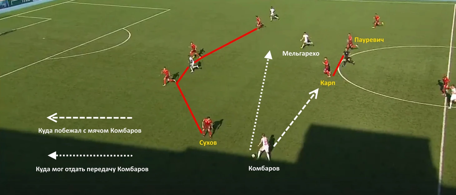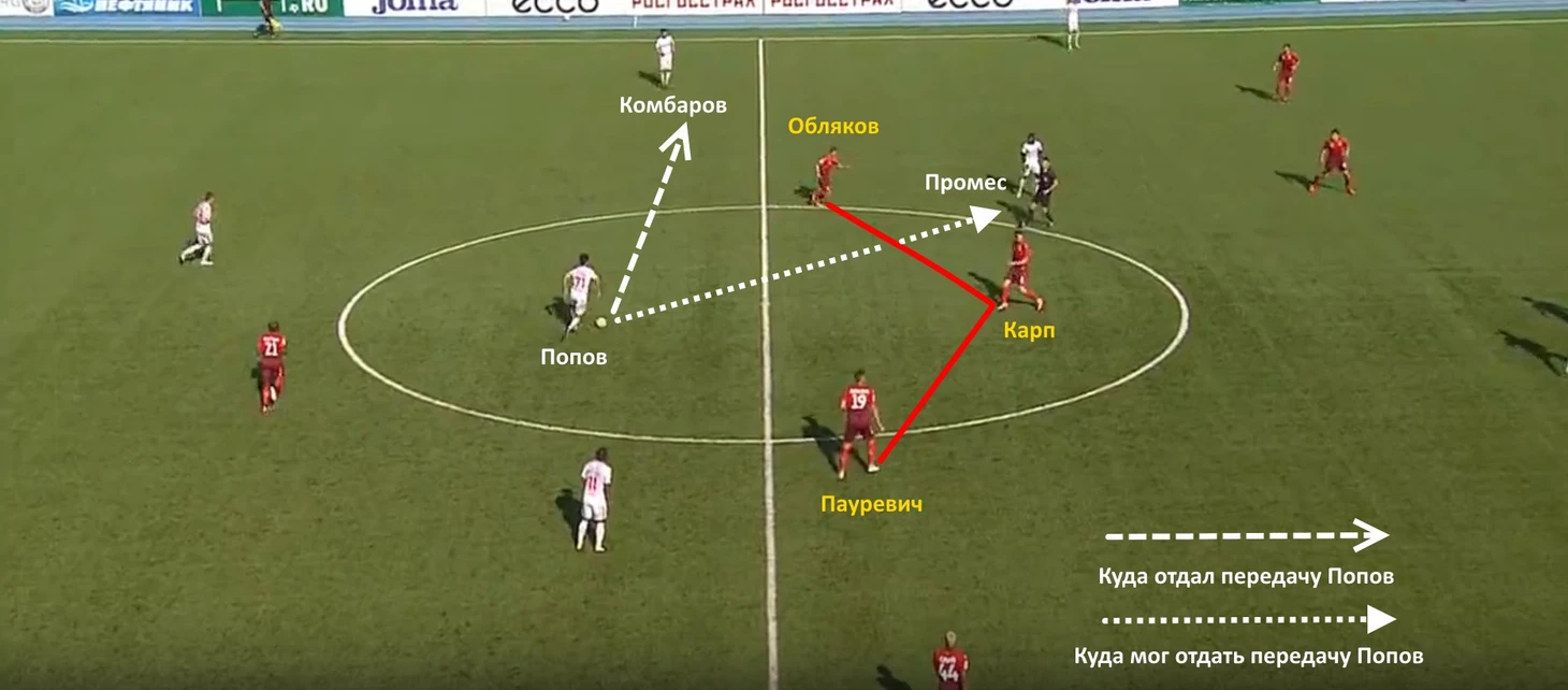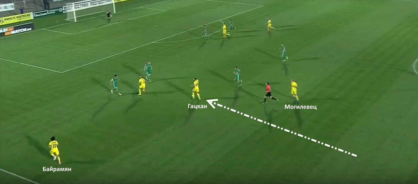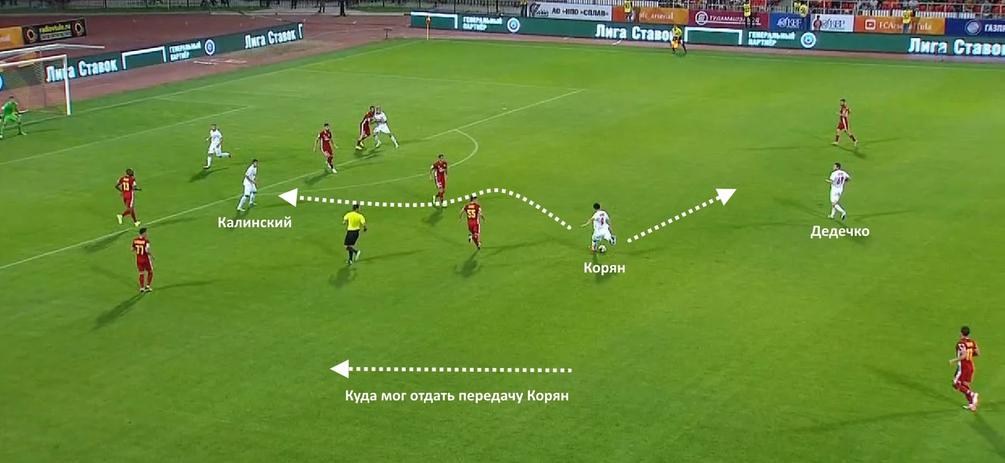 Конечно, свою роль играла и слабая помощь от партнеров (в приведенном примере центрфорвард Ари вообще находится в середине поля), но решения Лысова уходить к лицевой носили перманентный характер. Михаил ничего не испортил, но и креатива (в отличие от Фарфана) от него почти не было.