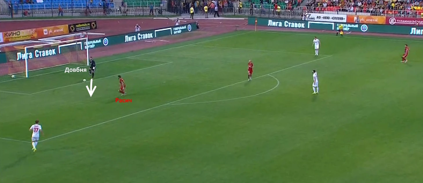 Вратарь СКА провел крайне неудачный матч в Туле. Сначала Довбня пропустил необязательный удар со штрафного от Ткачева, а спустя 20 минут подарил супермомент Расичу, но аргентинец им не воспользовался.