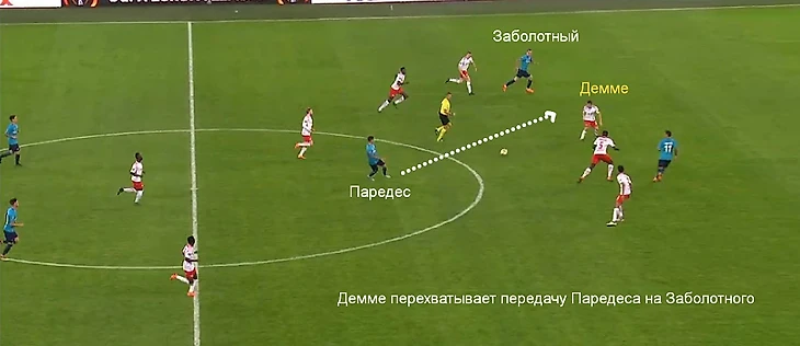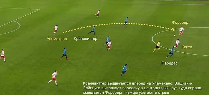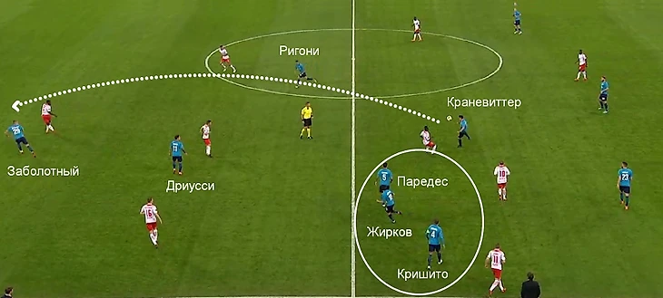 У петербуржцев были огромные разрывы между средней линией и парой форвардов. Подойти к воротам «Лейпцига» получалось только после забросов на Заболотного и Дриусси. Например, штрафной, после которого Паредес попал в перекладину, был назначен после простого (хоть и адресного) выноса Краневиттера вперед.