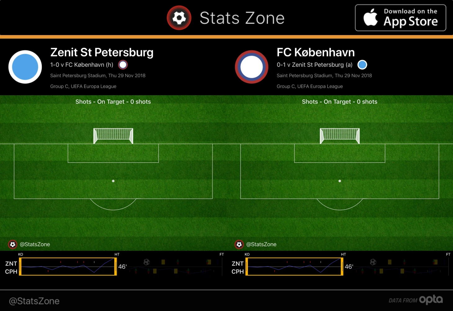 Карта ударов в створ после первого тайма выглядела абсолютно справедливой: