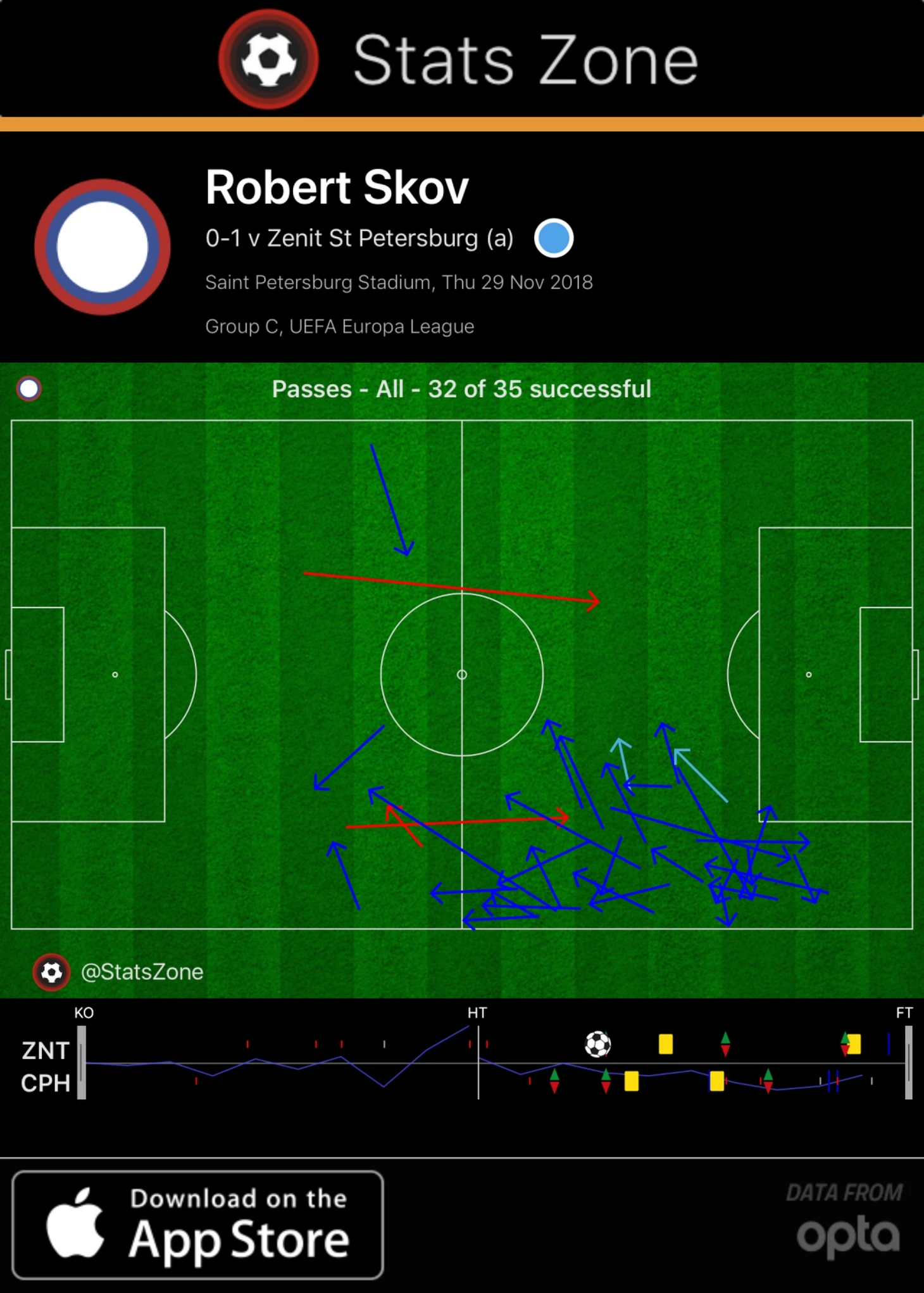После матча Семак подтвердил догадки: «Сков требовал отдельного внимания, поэтому с его стороны у нас сыграли Ерохин и Кузяев, которые справились с задачей». С оценкой тренера можно полностью согласиться – Сков ни разу не пробил по воротам, ни разу не пошел в обводку и в целом редко встречался с мячом (47 касаний до замены – за этот отрезок реже мяча касались только нападающие «Копенгагена» Ндойе и Сотириу). Скова опекали очень качественно – хавбеку в большинстве случаев приходилось пасовать назад (см.карту передач).