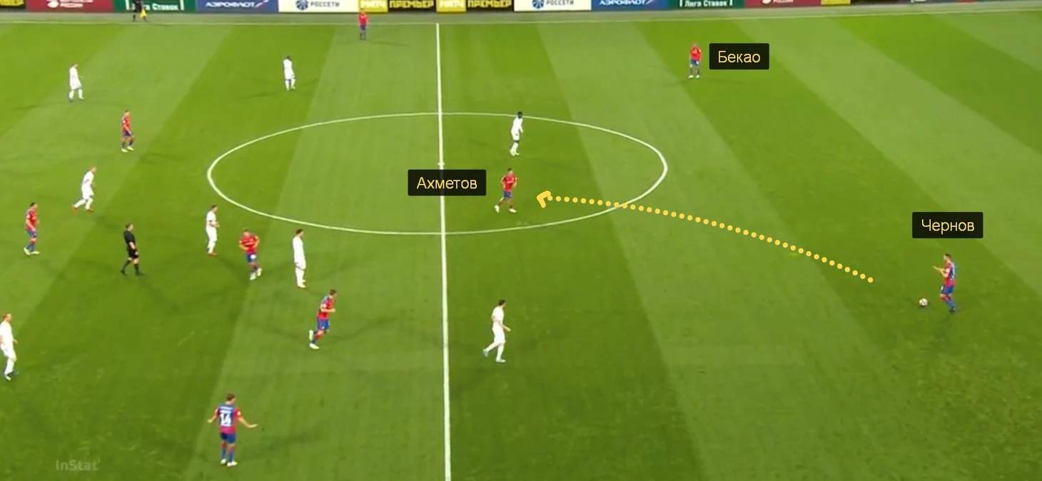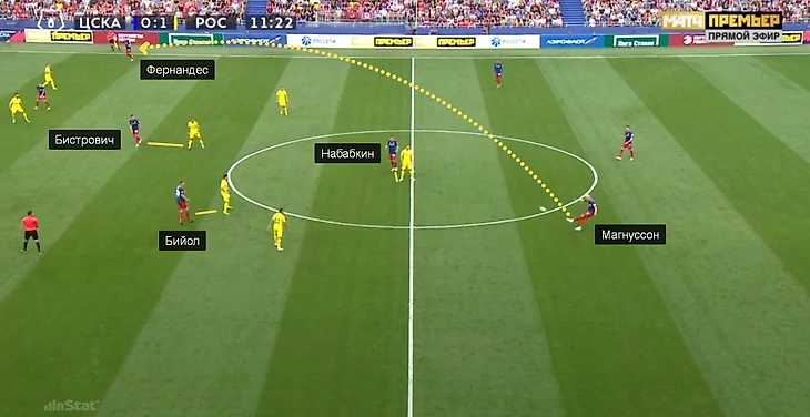 Летом у ЦСКА были большие проблемы с первой фазой атаки: одного Бистровича в середине поля не хватало (тем более хорват играл слабее, чем весной), а действовавшие рядом Яка Бийол или Кирилл Набабкин (да, было и такое) совсем не подходили для розыгрыша мяча.