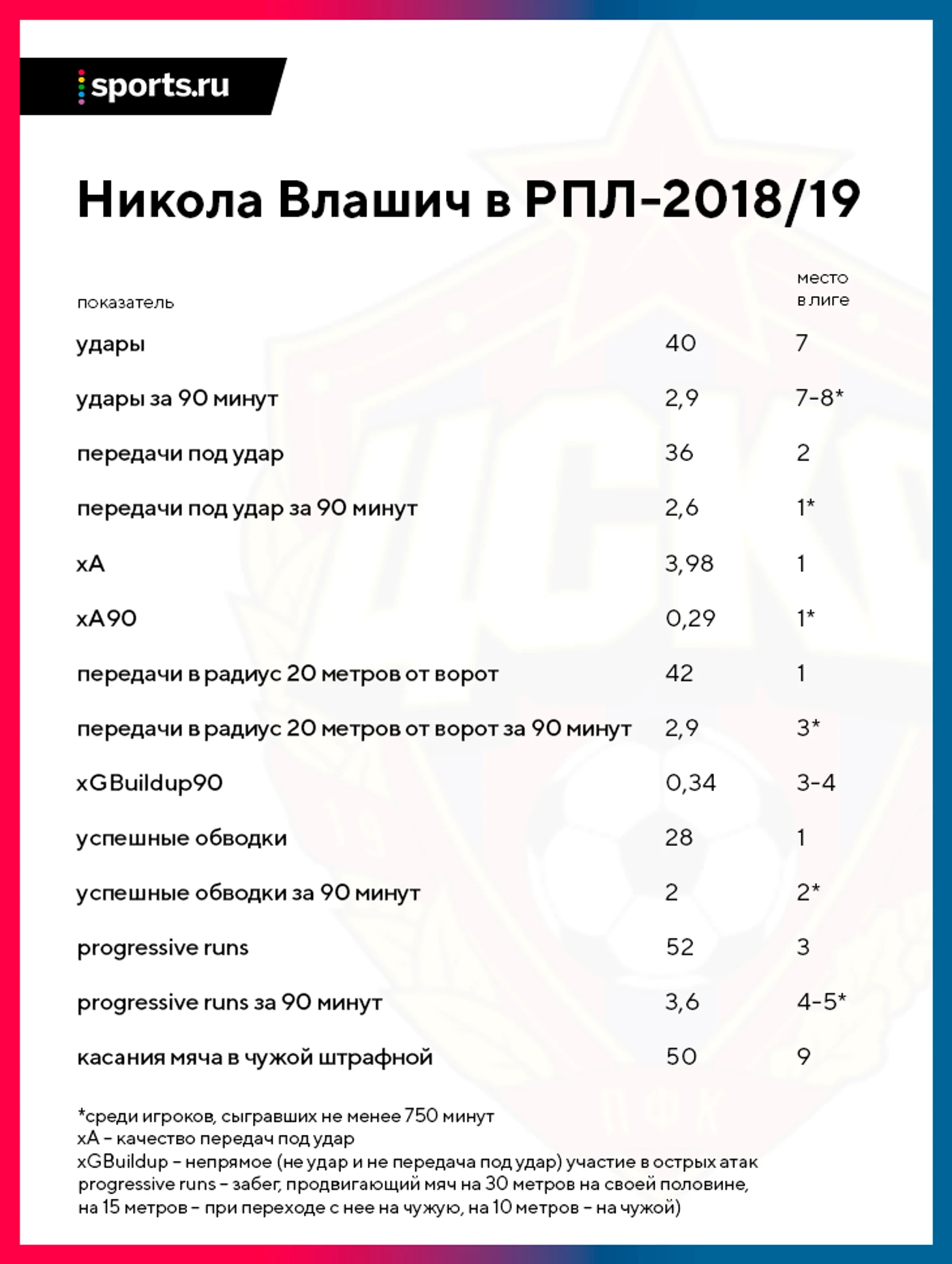 Влашич – самый сбалансированный атакующий игрок лиги. Он сам тащит мяч к чужой штрафной, обыгрывает 1-в-1 любого защитника РПЛ (доказано Браниславом Ивановичем), бьет (в том числе из-за штрафной – 2 гола из 4) и отдает лучший обостряющий пас (пока по количеству голевых передач Никола даже недобирает).
