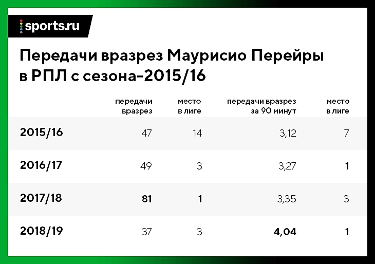 Паблик «Блокнот» отмечает, что Перейра чаще всех в РПЛ пытается войти в штрафную (учтены и передачи, и навесы, и ведение мяча). По попыткам проникнуть в финальную треть Перейра второй, а еще важнее, что он эффективен: по проценту успешности выше только Влашич и Марио Фернандес. Но даже несмотря на такие цифры, такие комплименты Перейре от Бердыева кажутся скорее личной симпатией, чем реальной оценкой игры Маурисио по всему сезону.