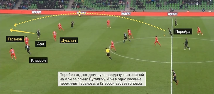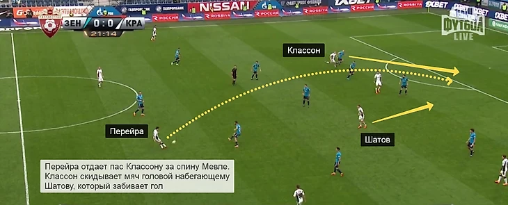 В прошлом сезоне Перейра отдал 6 предголевых передач (рекорд лиги за четыре года), в том числе в матче с «Зенитом», который был первым для Мурада Мусаева в «Краснодаре». Спустя полгода тот пас кажется первым результатом требований нового тренера к полузащитникам – передачи из глубины за спины защитникам соперника.