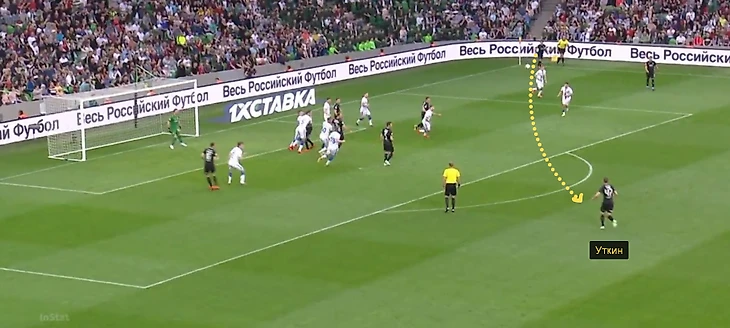 Еще одна весенняя новинка – подача за штрафную под удар Уткину (видимо, Мусаев считает, что Даниил качественнее всех бьет слету). Впервые такую передачу Перейра сделал в матче с «Зенитом», но тогда игра была остановлена из-за нарушения «Краснодара» в чужой штрафной. Против ЦСКА удар Уткина (причем с нерабочей правой ноги) уже пошел в статистику.