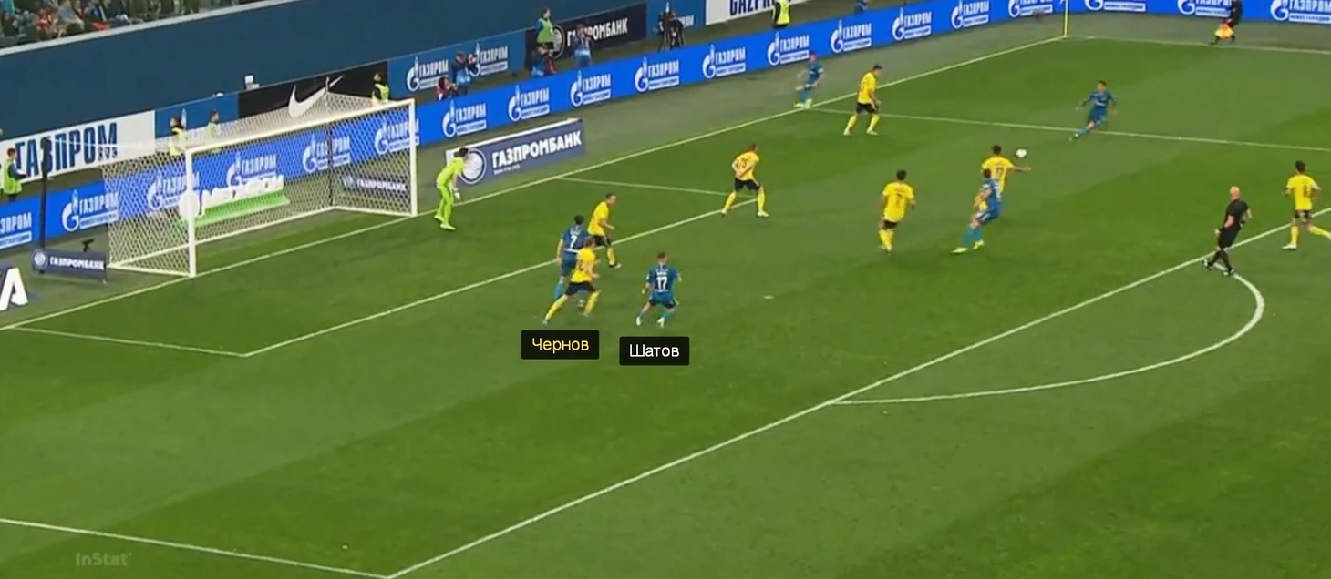 Чернов действовал некачественно не только при голах – например, за Шатова, скатившего под удар Оздоеву в конце первого тайма, тоже отвечал он (плюс – удар Ивановича после розыгрыша штрафного во втором тайме).