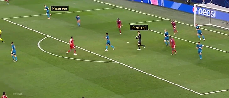 Не на Дзюбу пошли только 3 длинные передачи – только 1 была направлена в зону, где не было игроков «Зенита» (на 5-й минуте Марсело без сопротивления сыграл головой в центральном круге и начал атаку «Лиона»). Еще две случились уже в концовке – на 87-й и 93-й минутах. В этих эпизодах защитники отдавали пас назад Кержакову, а вратарь в одно касание выносил мяч к центру поля – получилось в сторону Жиркова и Сутормина (оба проиграли верховую борьбу).